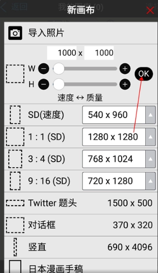 進入軟件后,先點擊【我的圖庫】,接著點擊底部的“+”號,創(chuàng)建一塊合適的畫布。