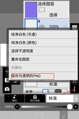 調整完成后,點擊對應圖層,接著點擊該圖層右下角彈出的三個點圖標,從中選擇“保存為透明PNG”選項來導出圖片。