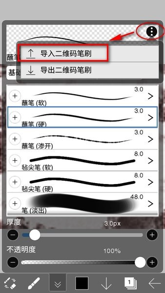 點擊右上角的三個點,并選擇“導入二維碼筆刷”;