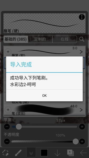 然后選中剛剛的筆刷二維碼圖片,頁面會彈出“成功導入下列筆刷”的提示,就像圖中展示的那樣。