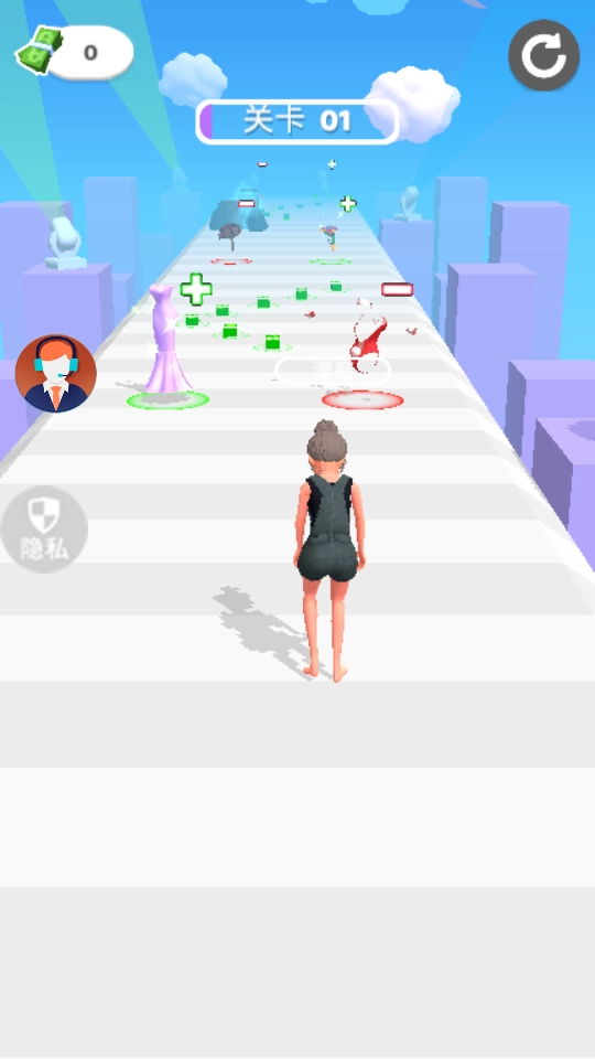 2、在【新娘改頭換面】關(guān)卡,通過滑動操控角色移動,優(yōu)先升級【魅力】【生命值】【速度】等免費屬性提升能力。