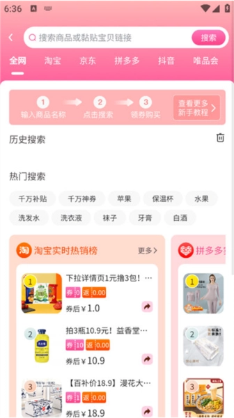整合淘寶、天貓、京東、拼多多等多個(gè)主流平臺(tái)的優(yōu)惠券,無(wú)需切換應(yīng)用,在一個(gè)平臺(tái)就能領(lǐng)取所有優(yōu)惠。