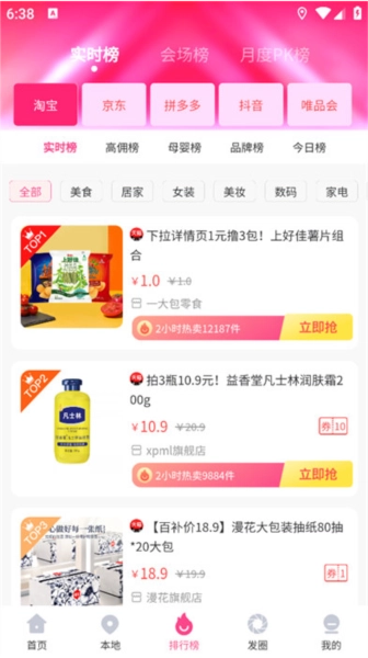 可以實(shí)時(shí)查看各平臺(tái)的商品購(gòu)買榜單,知曉當(dāng)下熱門商品的詳細(xì)信息,為購(gòu)物決策提供輔助。