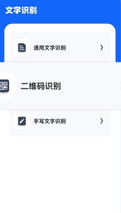 文字識(shí)別功能界面下,還進(jìn)一步劃分出通用文字識(shí)別、二維碼識(shí)別和手寫(xiě)文字識(shí)別這幾個(gè)類別。