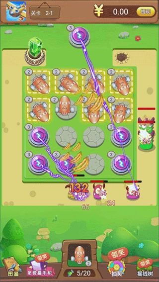 在擊敗小怪和合成炮塔時(shí),可以獲得紅包;