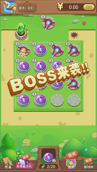 每個(gè)關(guān)卡的末尾都會(huì)出現(xiàn)一個(gè)BOSS,它的血量非常厚,趕緊合成并升級(jí)你的炮塔吧。