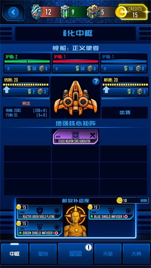 解放星球后能獲取金幣,這些金幣可用于在中樞購買各類模塊,以此來強化你的戰(zhàn)艦。