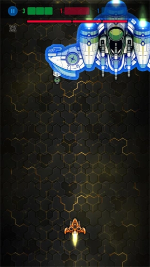 選好星球后戰(zhàn)斗便會啟動,進入戰(zhàn)斗場景后,玩家只需滑動屏幕操控飛機避開敵方子彈,戰(zhàn)機則會自動發(fā)射彈幕進行攻擊。