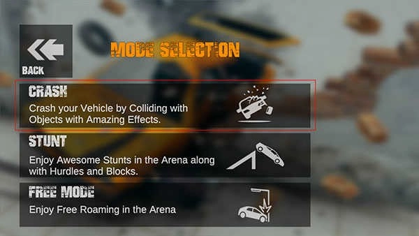 挑選一輛汽車,駕駛它在開闊的場景里盡情碰撞。