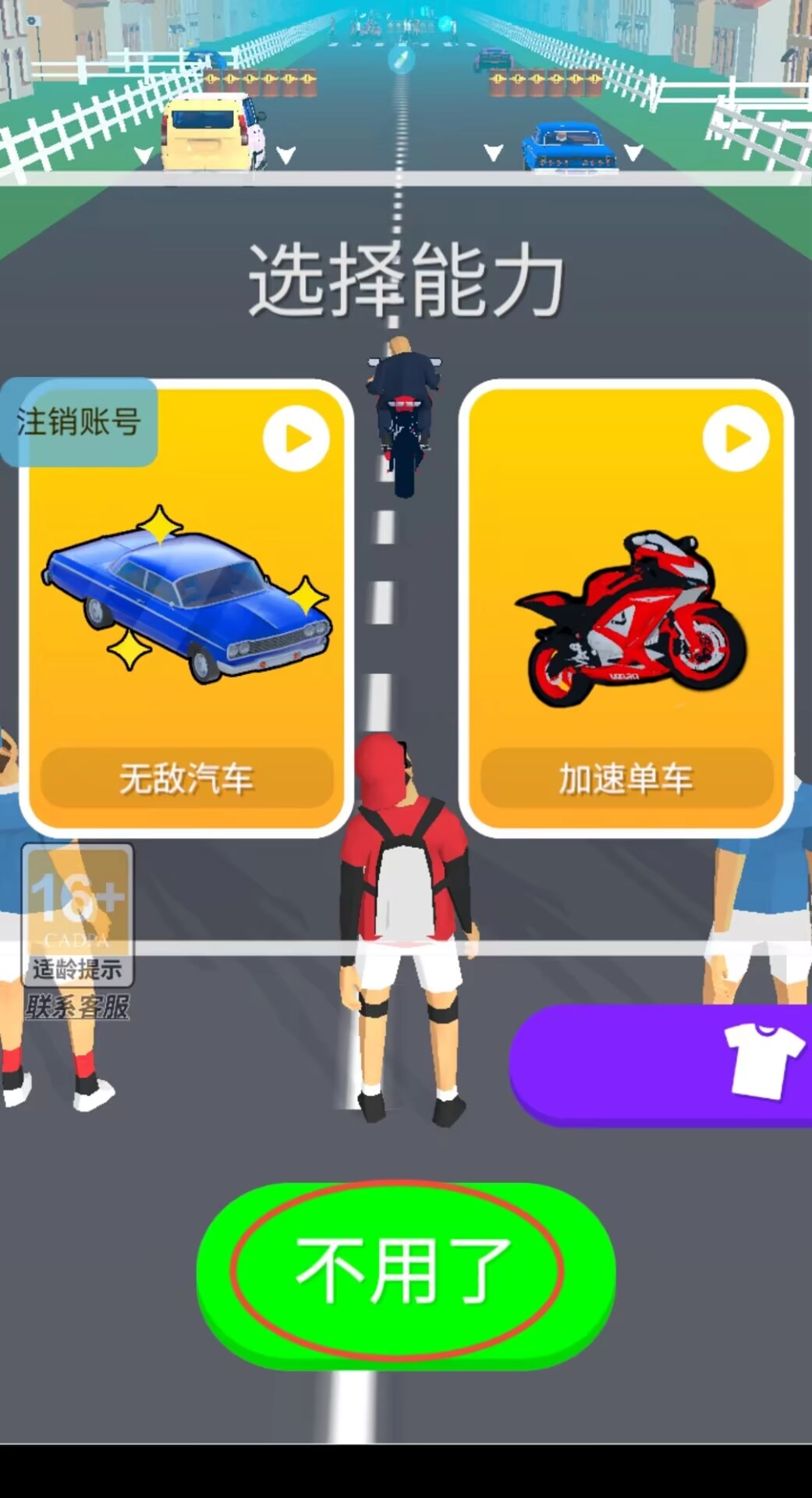 游戲啟動(dòng)界面設(shè)有能力選擇項(xiàng),完成確認(rèn)后點(diǎn)擊屏幕中央位置就能正式開(kāi)啟挑戰(zhàn)環(huán)節(jié)。