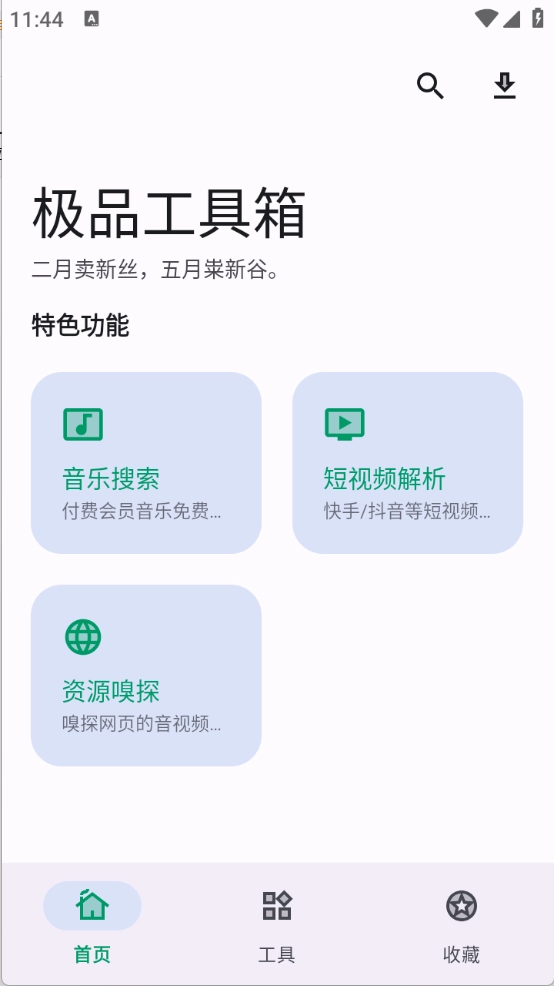 首頁為大家推薦熱門工具,涵蓋音樂搜索、短視頻解析等功能。