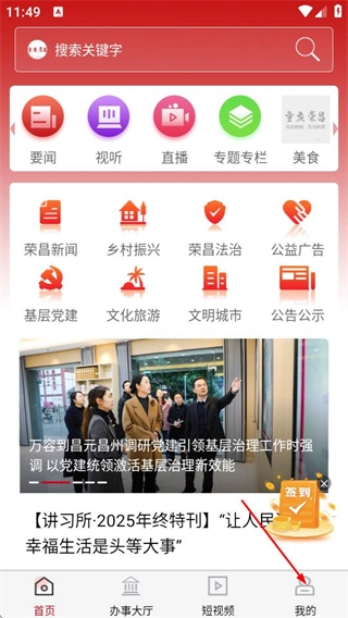 在重慶榮昌首頁點擊底部的“我的”選項,就能進入個人中心頁面。