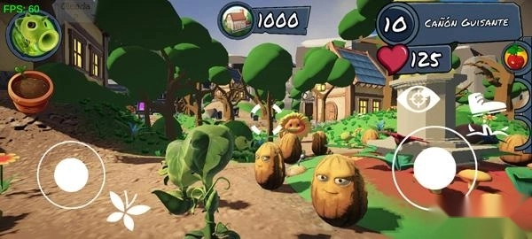 進(jìn)入游戲如圖,玩家可操縱植物移動(dòng)射擊僵尸;