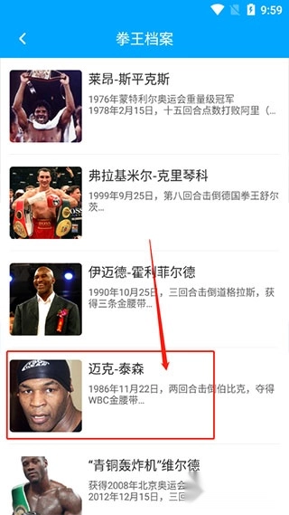 在檔案里找到泰森,或者是找到自己喜歡的拳王