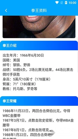 點(diǎn)擊拳王就可查看這位拳手的的個(gè)人資料了