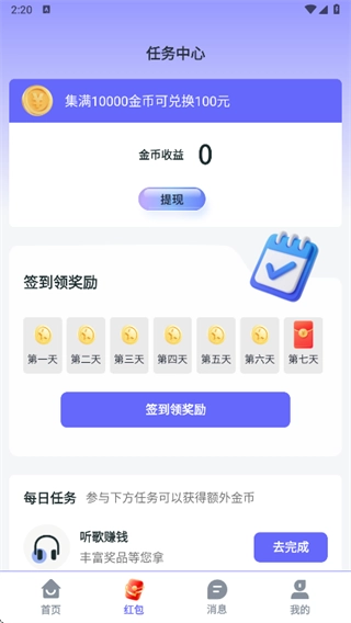 打開任務(wù)中心,通過簽到和完成每日任務(wù)就能獲取金幣獎勵。