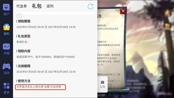 進入游戲內(nèi)點擊小彈窗,然后選擇右邊的福利。