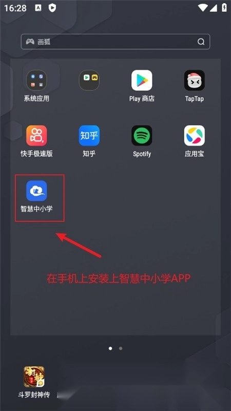 安裝結(jié)束后,回到設(shè)備主屏幕,找到“智慧中小學(xué)”的圖標(biāo),點擊該圖標(biāo)即可啟動應(yīng)用。