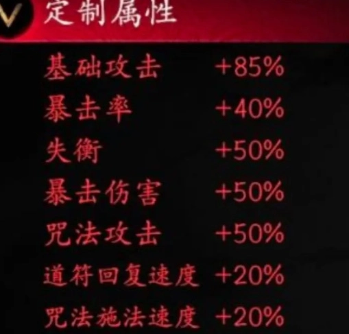 符咒方面額外說(shuō)明一下:天師符定制可增加50點(diǎn)攻擊,其他屬性符定制則增加85點(diǎn);另外武器定制失衡的加成是三十點(diǎn)。