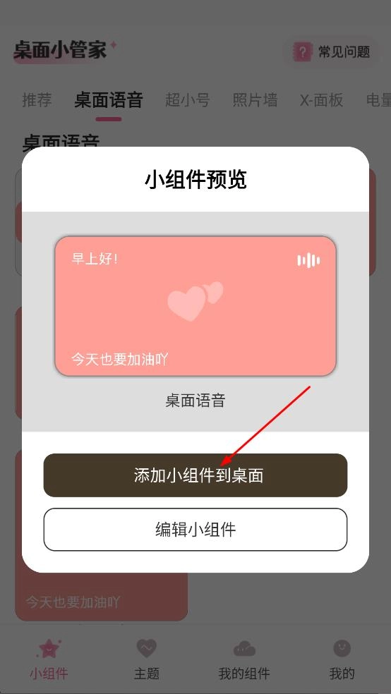 在桌面語音界面,挑選桌面語音樣式后,點(diǎn)擊進(jìn)入小組件預(yù)覽界面。