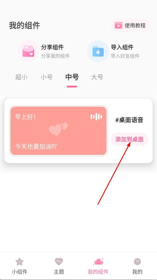 返回主界面后,進(jìn)入我的組件頁面,點(diǎn)擊“添加到桌面”按鈕,就能把組件添加到桌面了。