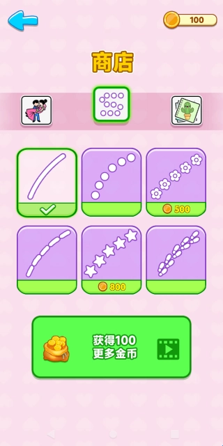 玩家還能在商店里選購(gòu)各式各樣的線條皮膚,讓自己畫(huà)出的線條呈現(xiàn)出不同的花樣,趕緊積累金幣來(lái)解鎖它們吧!