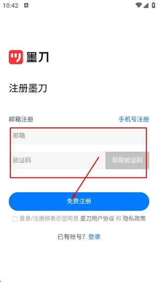 請先輸入您的郵箱地址,接著獲取對應(yīng)的驗(yàn)證碼,之后點(diǎn)擊“免費(fèi)注冊”按鈕,即可完成賬號的注冊流程。