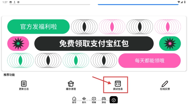 在功能頁面中,點擊調試信息選項后,會彈出調試信息窗口。