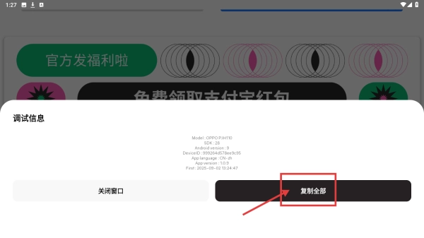 在調試信息窗口中,找到并點擊“復制全部”按鈕,即可完成調試信息內(nèi)容的復制操作。