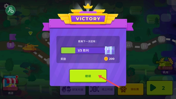 將敵方坦克消滅即可通關(guān),點(diǎn)擊【繼續(xù)】持續(xù)挑戰(zhàn)