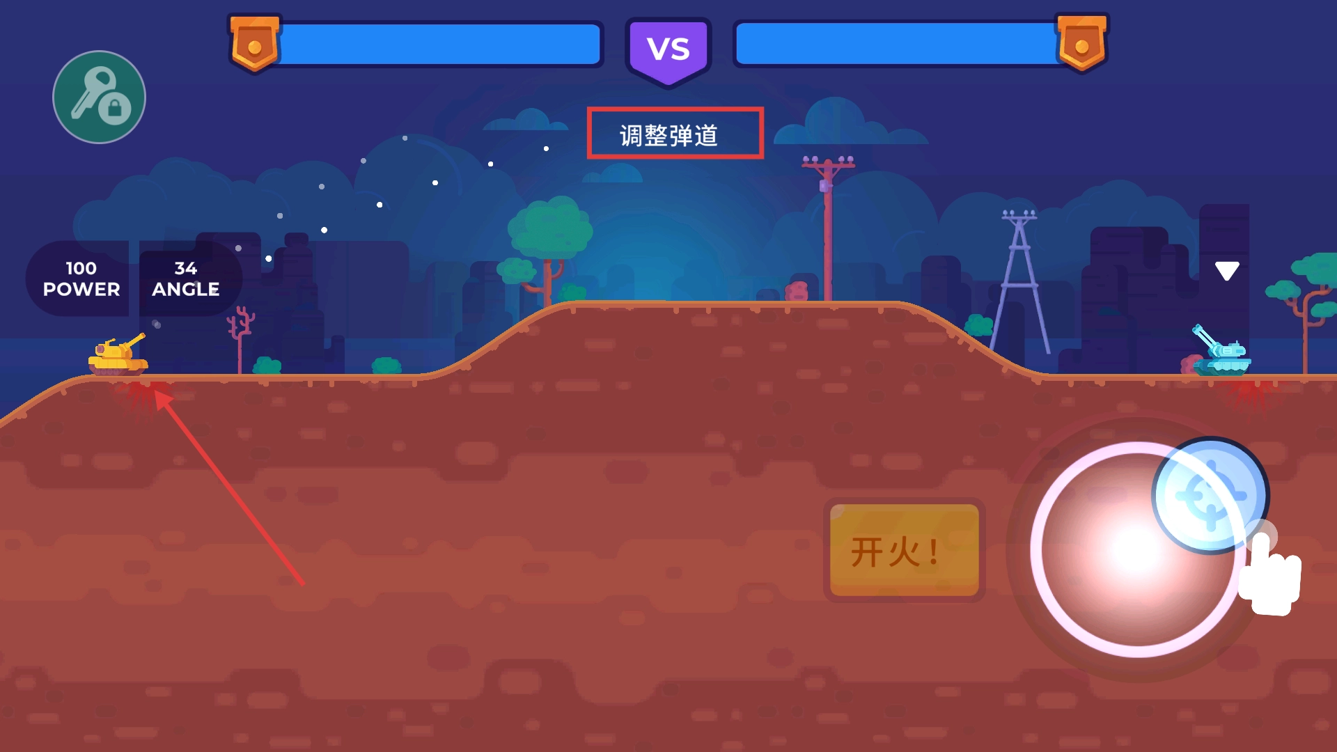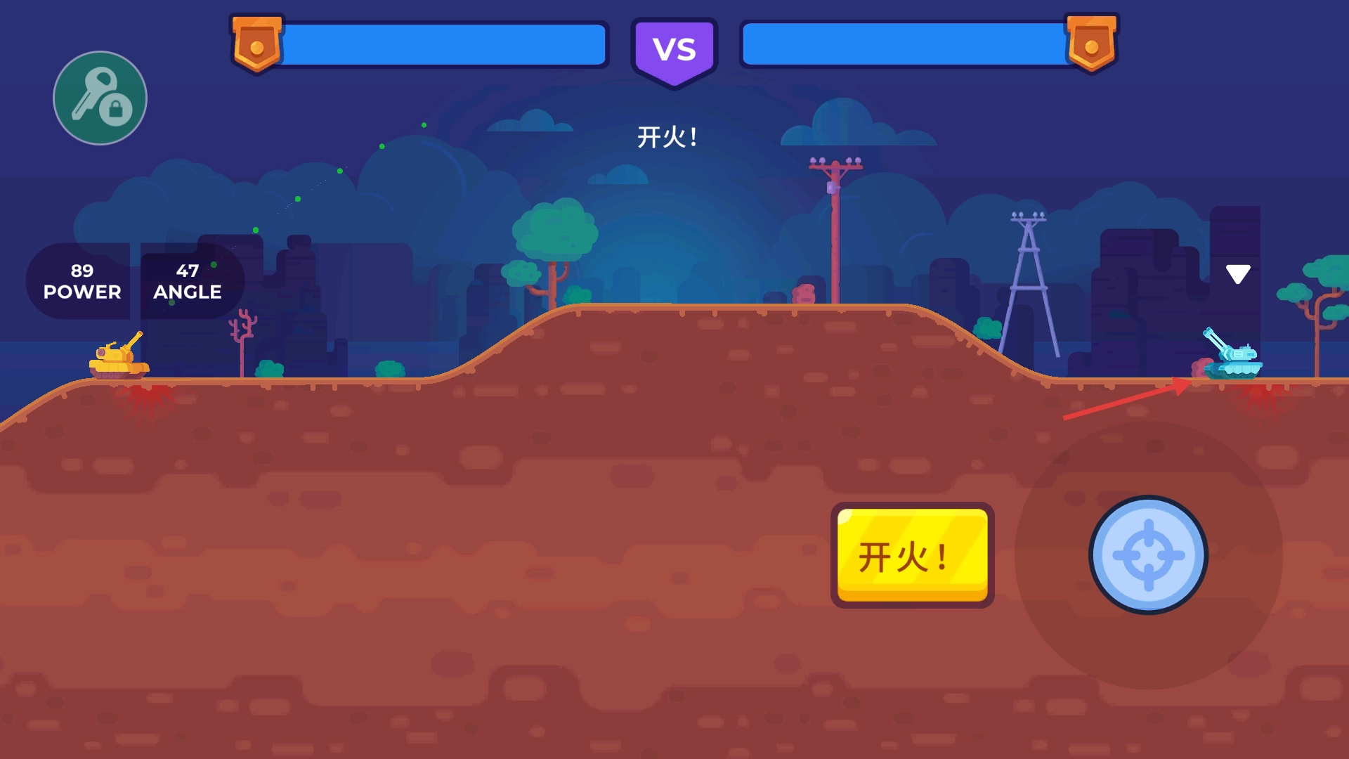 當(dāng)【開(kāi)火按鈕】呈現(xiàn)黃色時(shí),可再次調(diào)整【角度】與【力量】參數(shù),精準(zhǔn)點(diǎn)擊該按鈕發(fā)起二次攻擊,以此進(jìn)一步擴(kuò)大對(duì)戰(zhàn)優(yōu)勢(shì)。