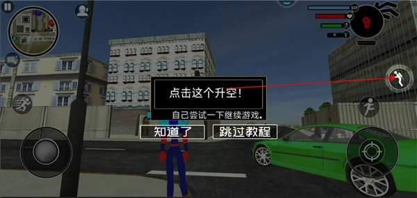 點擊右上角按鈕可以控住火柴人進行升空。