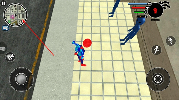 按住右下角的圖標,既能夠控制火柴人瞄準,也可以查看周圍的環(huán)境。