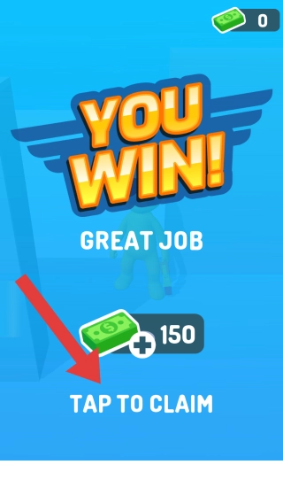 結(jié)算場(chǎng)景中呈現(xiàn)出“YOUWIN!(你贏了)”“TAPTOCLAIM(點(diǎn)擊領(lǐng)?。钡膶?shí)體信息,同時(shí)還有獎(jiǎng)勵(lì)金幣以及金幣數(shù)量的顯示,這是玩家完成關(guān)卡后的畫面,直觀展現(xiàn)出玩家獲勝且能夠領(lǐng)取獎(jiǎng)勵(lì)的狀態(tài)。