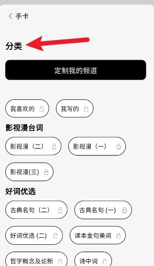 點(diǎn)擊“分類”標(biāo)簽,就能瀏覽各類主題的作文手卡內(nèi)容,涵蓋影視、哲學(xué)、古文等多種分類。