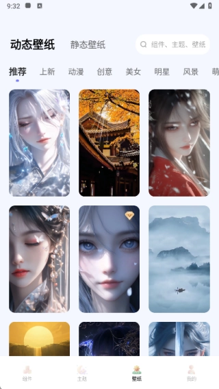壁紙頁面里主要有動態(tài)壁紙和靜態(tài)壁紙兩類,你可以自由挑選自己喜歡的壁紙。