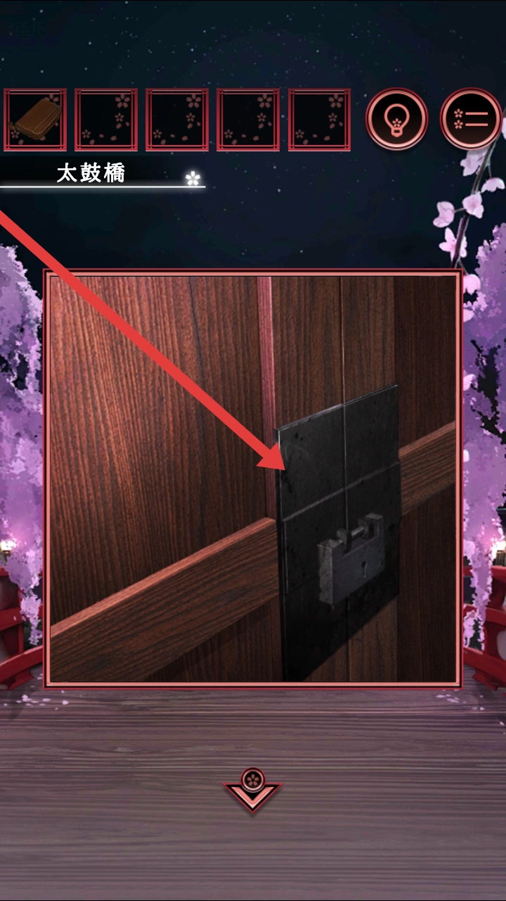 抵達「太鼓橋」的位置后,將注意力集中在門鎖機關上,借助場景中的線索嘗試解開機關,清除障礙以推動游戲的進行。