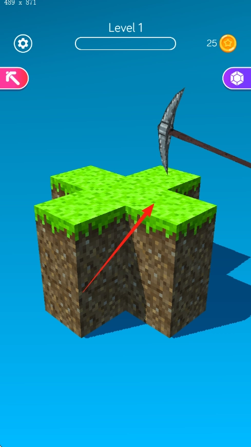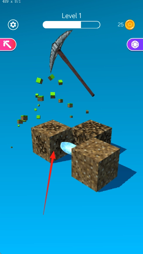 礦石挖掘的操作在Level1進行,你需要操控鐵鎬,點擊綠色草地方塊來啟動挖掘流程,然后逐層破除土壤即可。