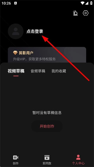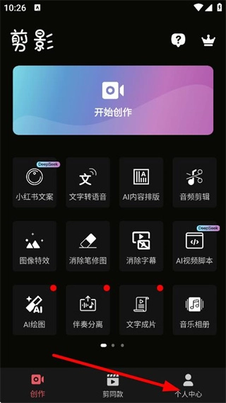 在剪影軟件的主界面,點(diǎn)擊右下角的個(gè)人中心按鈕,即可進(jìn)入對應(yīng)的頁面。