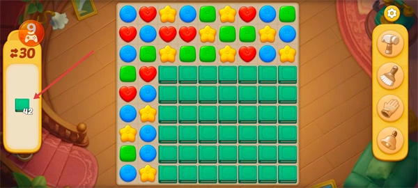 觀察游戲界面的任務(wù)目標(biāo),本關(guān)的要求是收集42個(gè)綠色方塊。
