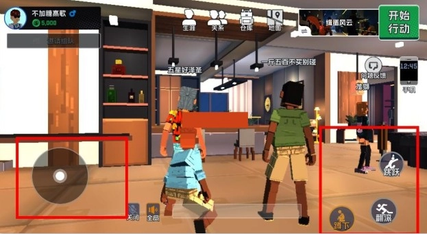 游戲正式開(kāi)始后,玩家需通過(guò)左側(cè)操作控制角色移動(dòng),右側(cè)則對(duì)應(yīng)跳躍、翻滾與蹲下動(dòng)作;點(diǎn)擊輪盤(pán),即可完成攜帶武器的裝備操作以及道具的使用。