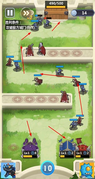 指揮我方單位向前推進(jìn),攻破敵方的城門,達(dá)成關(guān)卡的核心目標(biāo),以此推動戰(zhàn)斗的進(jìn)程。