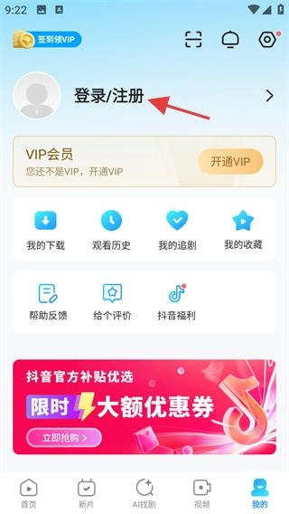 打開人人視頻的首頁后,點(diǎn)擊頁面底部的【我的】選項(xiàng),即可進(jìn)入個(gè)人中心頁面。