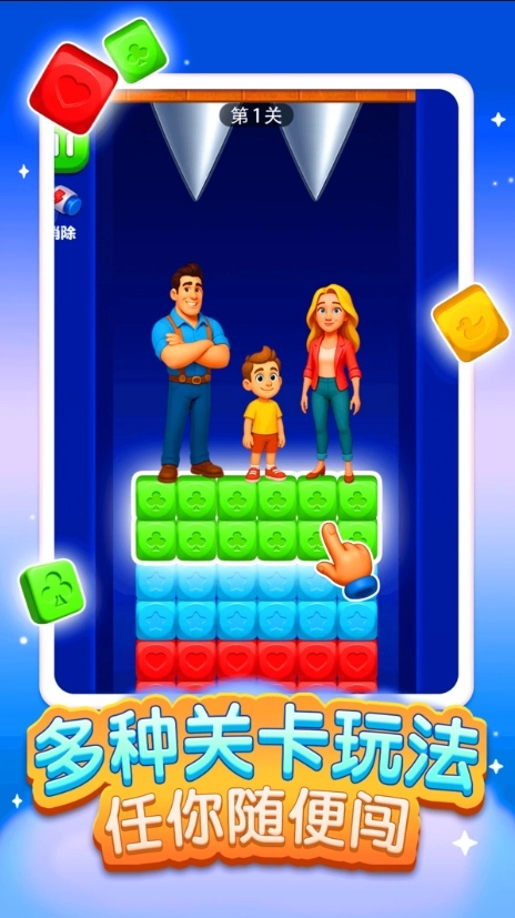 《拯救一家三口》這款休閑益智游戲,巧妙地把經(jīng)典的消消樂玩法和緊張刺激的密室逃脫元素融合在了一起。玩家需要在關(guān)卡里消除方塊,以此來開辟出逃生的道路、清除那些致命的障礙,或者觸發(fā)關(guān)鍵的機關(guān),最終目標是把被困在危機重重密室中的爸爸、媽媽和孩子都安全地解救出來。游戲過程中,滾落的巨型球體、不斷下壓的鋒利鋸齒等動態(tài)危險會步步緊逼,十分考驗玩家的消除策略和對時機的判斷能力。和傳統(tǒng)消消樂以追求高分為核心不同,這款游戲的關(guān)鍵在于把消除當作解謎的工具,為這一家三口爭取活下去的機會,從而給玩家?guī)硪环N獨特的益智挑戰(zhàn)體驗。