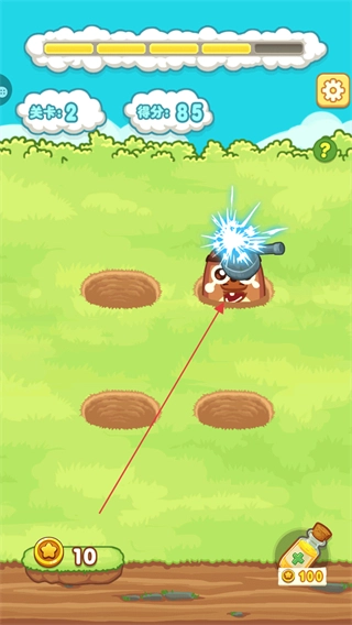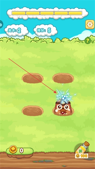 在第二關(guān)里,要及時(shí)點(diǎn)擊冒出來的地鼠,每擊中一次都能得到分?jǐn)?shù),把這些分?jǐn)?shù)積攢起來。