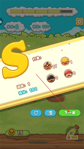當(dāng)分?jǐn)?shù)滿足關(guān)卡設(shè)定的目標(biāo)時(shí),就能得到S級(jí)評(píng)定,點(diǎn)擊下一關(guān)可繼續(xù)進(jìn)行挑戰(zhàn)。