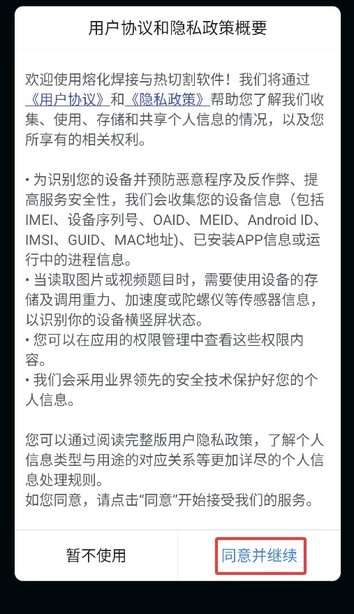 首次打開應(yīng)用時,需點(diǎn)擊彈窗里的同意按鈕,這樣才能進(jìn)入主界面使用應(yīng)用。