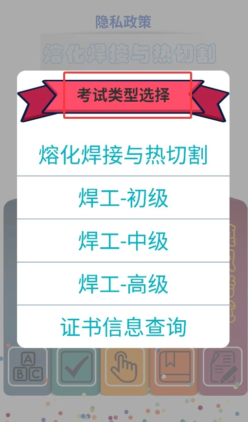 需先選定考試類別,比如熔化焊接與熱切割、焊工等級或者證書查詢這類方向。