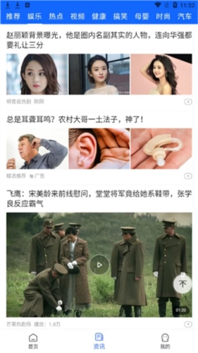 點(diǎn)擊資訊板塊,在這里能瀏覽娛樂(lè)、視頻、熱點(diǎn)、搞笑等各類資源。