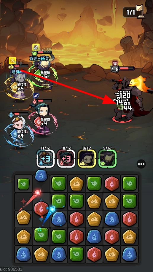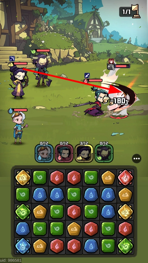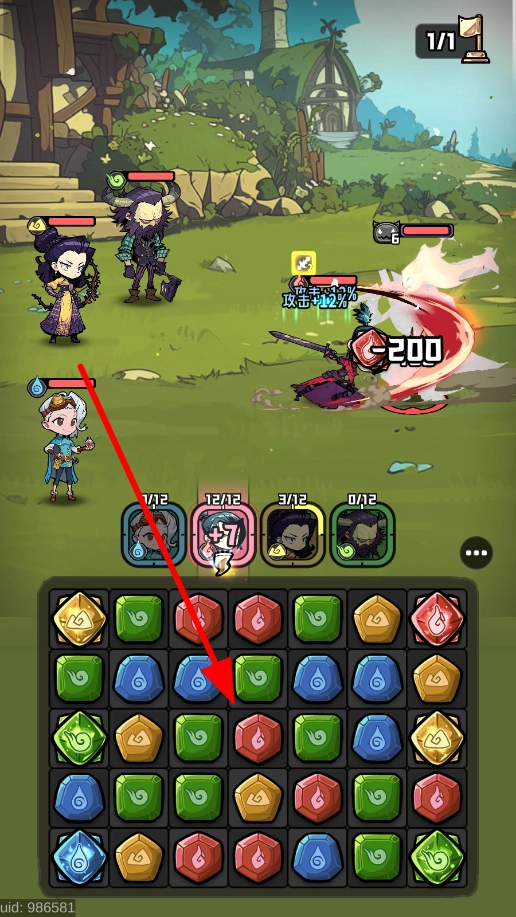 在游戲界面下方的寶石區(qū)域,你可以通過(guò)移動(dòng)寶石的位置,讓三枚相同顏色的寶石連成一條直線,如此便會(huì)觸發(fā)攻擊機(jī)制。